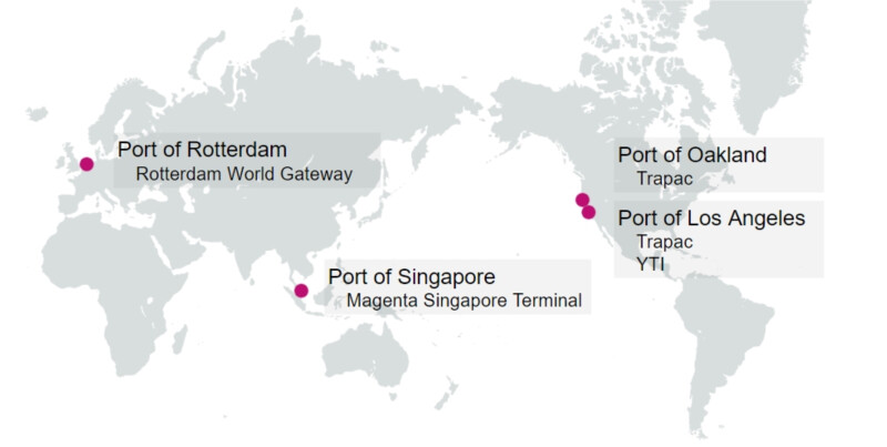 Com a conclusão destas três aquisições, a ONE estabeleceu uma forte presença em três locais estratégicos chave: a Costa Oeste dos EUA (Trapac, YTI), o Norte da Europa (RWG) e o Sudeste Asiático (Magenta Singapore Terminal).