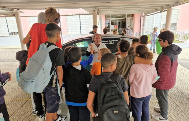 Os jovens do 1º grupo da escola de Santa Iria de Azóia, que depois serviram como 'co-monitores' quando a seguir se fez a ação para quase toda a escola, em pleno intervalo grande