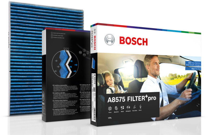 Na primavera, quando começa a época do pólen, cresce a importância dos filtros de habitáculo. Os condutores estão cada vez melhor informados à cerca dos contaminantes do ar, dos alergénios e vírus, e exigem a melhor qualidade possível do ar no interior do veículo. Graças ao mais recente desenvolvimento do filtro de habitáculo FILTER+pro da Bosch, as oficinas podem agora oferecer aos seus clientes uma proteção adicional para a saúde dos ocupantes do veículo. O novo filtro é o sucessor do FILTER+ da Bosch, capaz de separar alergénios e pólen, pó fino, bactérias e gases nocivos. Adicionalmente, a nova geração FILTER+pro atua eficazmente contra vírus assim como evita o aparecimento de mofo. Até ao final de 2023, o FILTER+pro irá substituir completamente o seu antecessor dentro da gama Bosch.